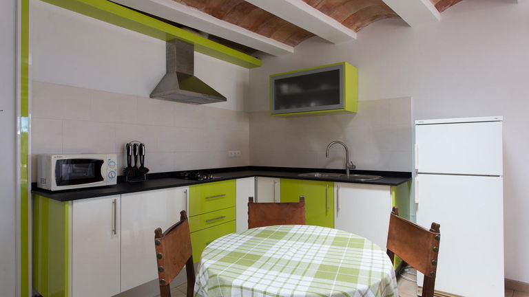Located 1 kilometer from ES CALO, this house sleeps 4, with capacity for up to 6. It features a large terrace and a security fence.