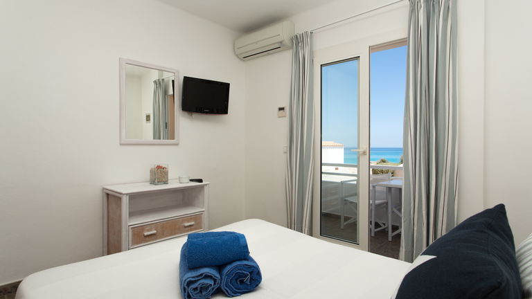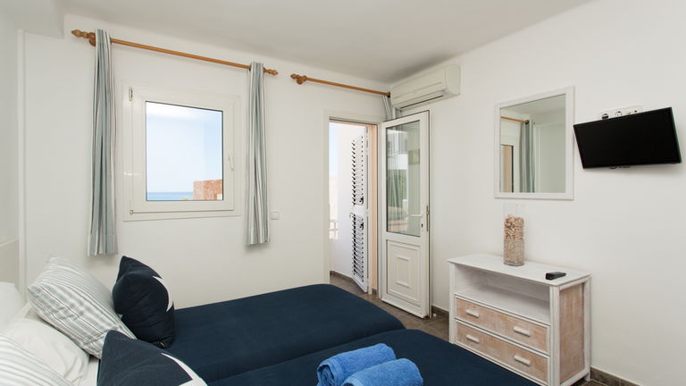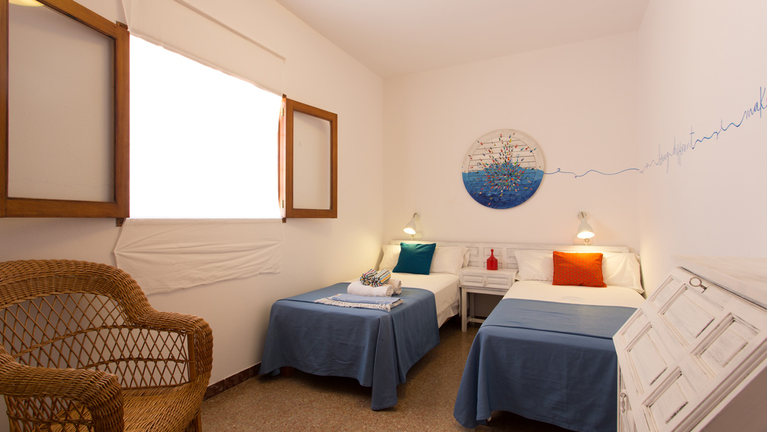 Todas las habitaciones disponen de baño propio completamente equipado y de balcon o terraza con vistas al mar y a la Mola de Formentera. Todas las habitaciones están equipadas con televisión y con WI-FI. El alojamiento incluye servicio de habitaciones diario.